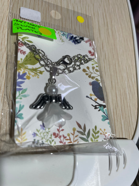 Acrylic Angel Antique Silver Coloured Necklace - 16"