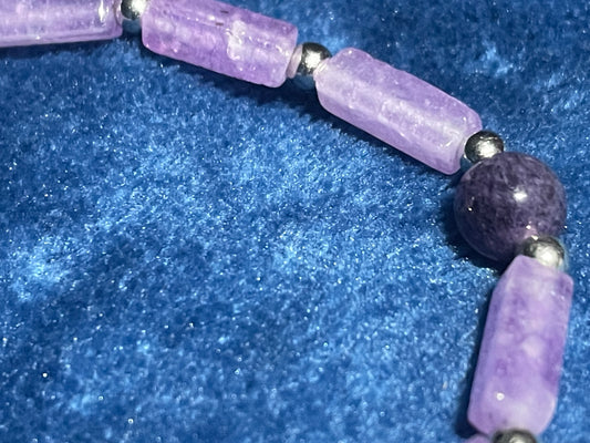 Amethyst Cuboid Crystal Stone Bracelet, with an 8mm Round Amethyst Accent