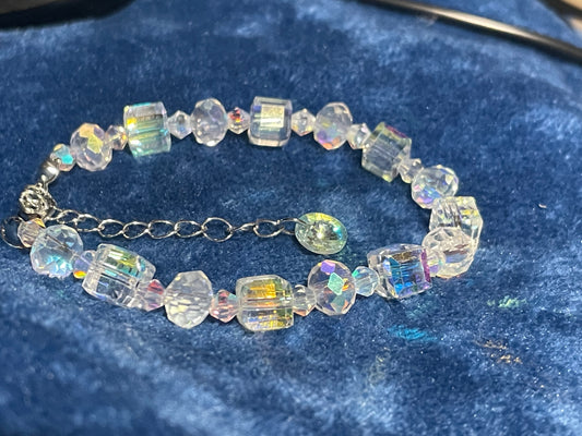 6mm Briolette Crystal Glass Bead Bracelet AB