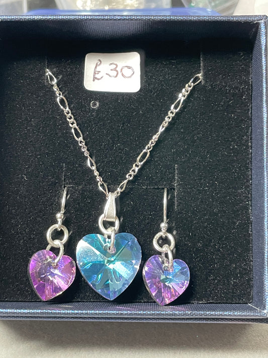 Sterling Silver Crystal Silvered Hearts Jewellery Set
