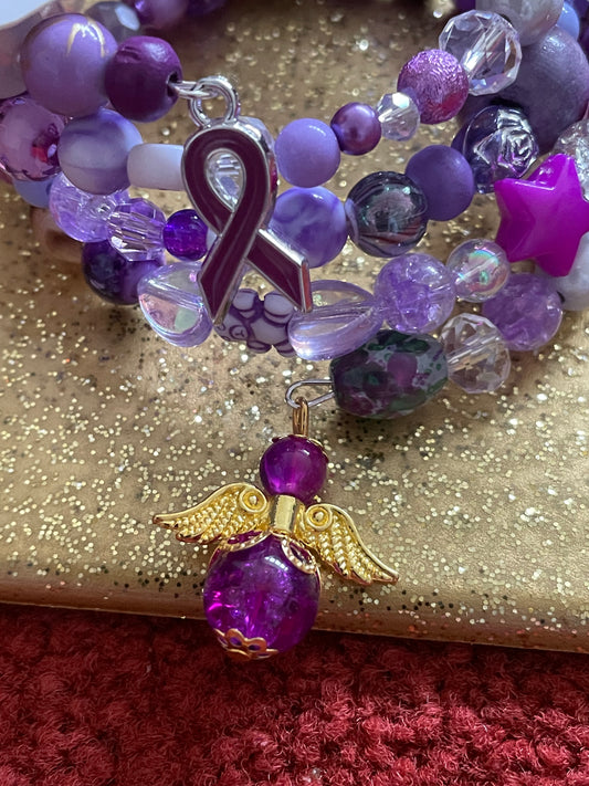 Purple (non-specific) Medical Condition Awareness Charms Tassels with Angels and/or Butterflies with Lobster Clasps