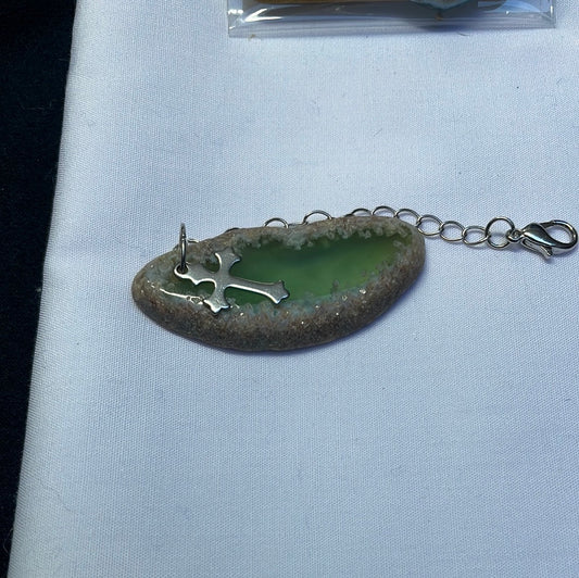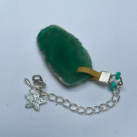 Green Long Agate with 10mm lobster clasp and just for you charm