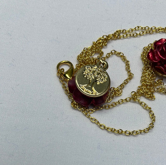 Gold Plated English Rose Tree of Life Pendant - 18"