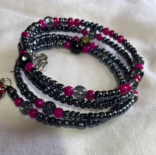 Black Memory Wire Bangle with Hot Pink Splashes