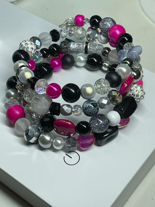 Black, White and Silver. Czech Crystals and hot pink accents