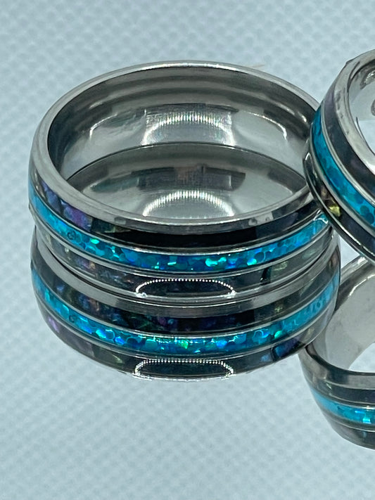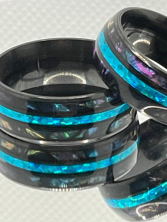 8mm Black Stainless Steel Ring with Glittery Deep Blue Band