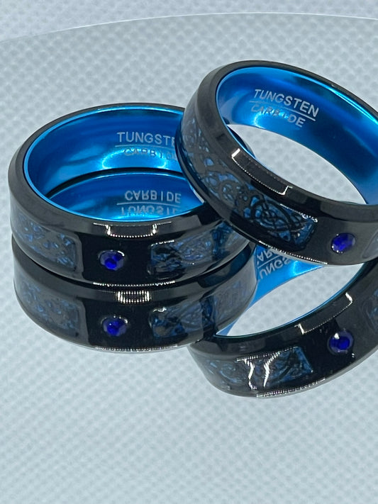 8mm Black & Blue Tungsten Carbide Ring