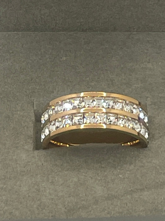 Size 5 Stainless Steel Double Zirconia Band Ring