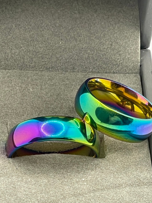 Rainbow 6mm Band Stainless Steel Ring