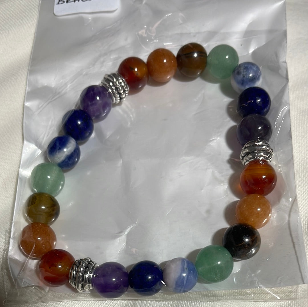 3 sets of 7 beads. One type of gemstone for each chakra.